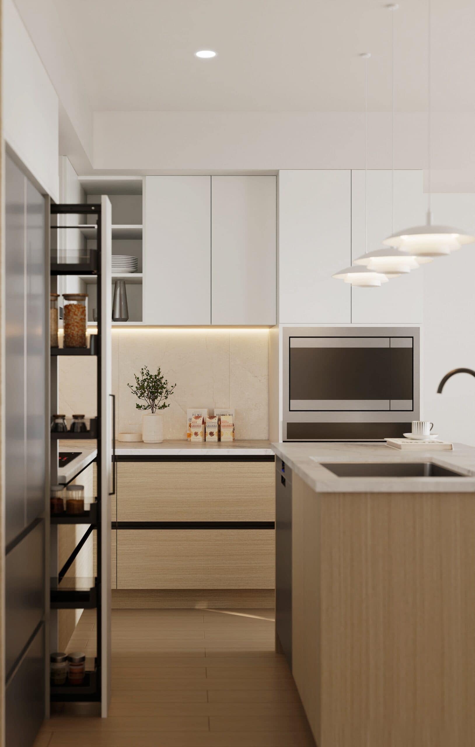 - Pull-out pantry in select homes