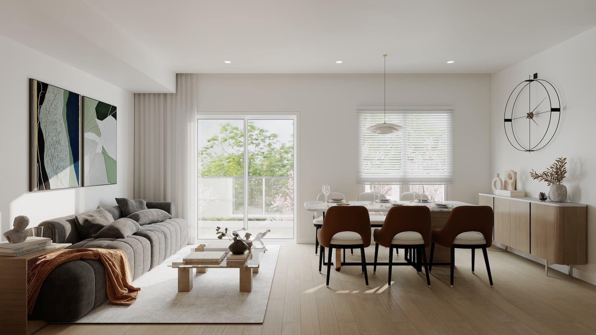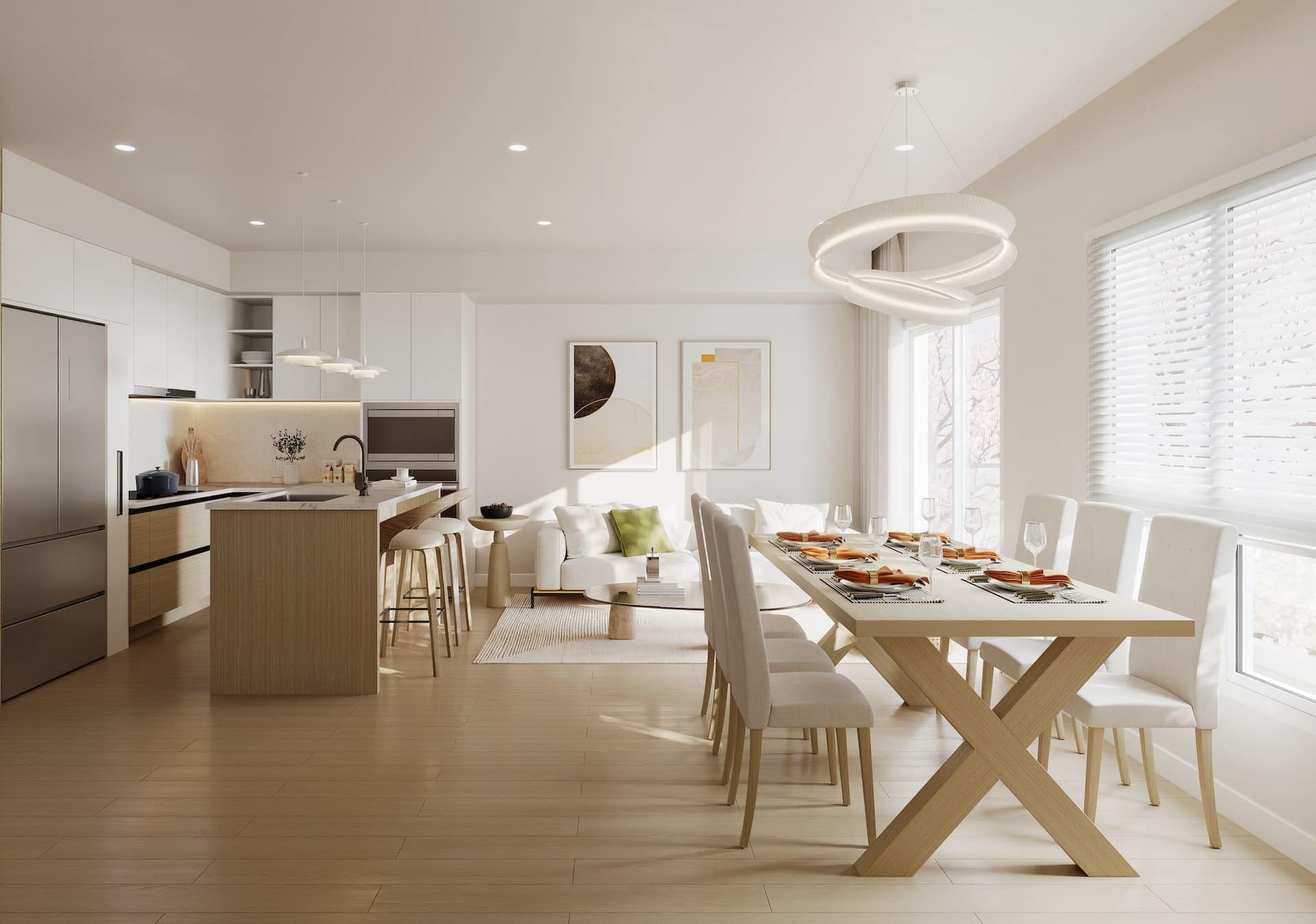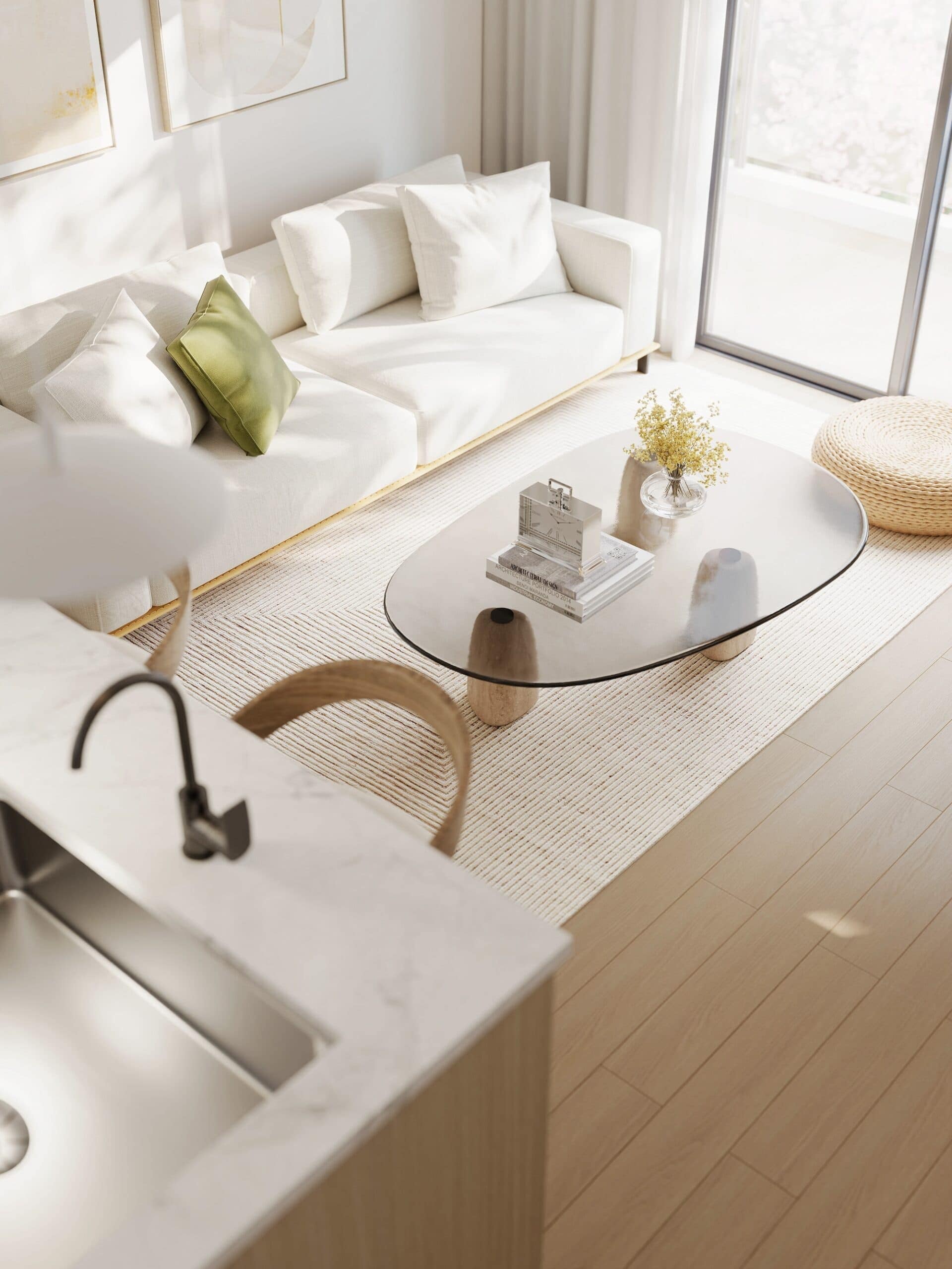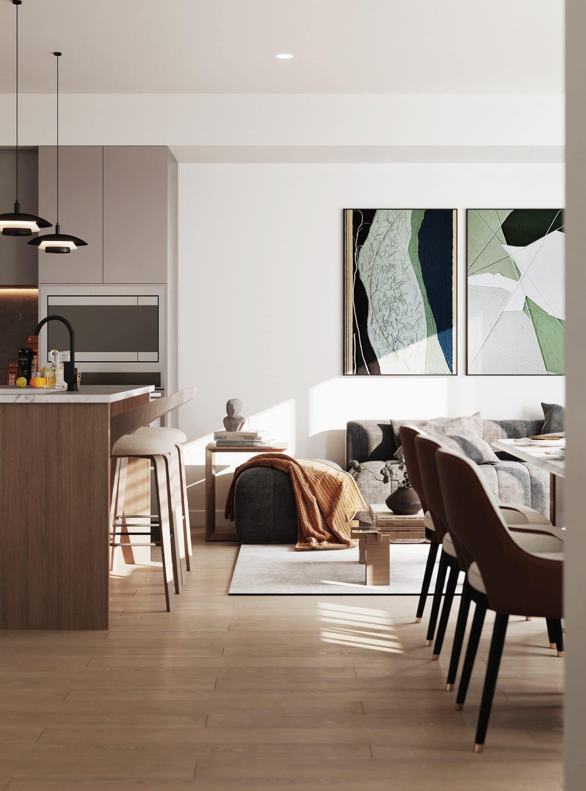 Inside, Kamilia homes are designed with a warm, refined aesthetic that balances clean-lined sophistication with everyday practicality. Spacious Jr. 2-bedroom and 2-bedroom + flex layouts offer flexibility for work, storage, and family life. High ceilings, expansive windows, and generous balconies create bright, comfortable living spaces; durable, high-quality finishings and premium appliances round out homes built for longevity and ease.