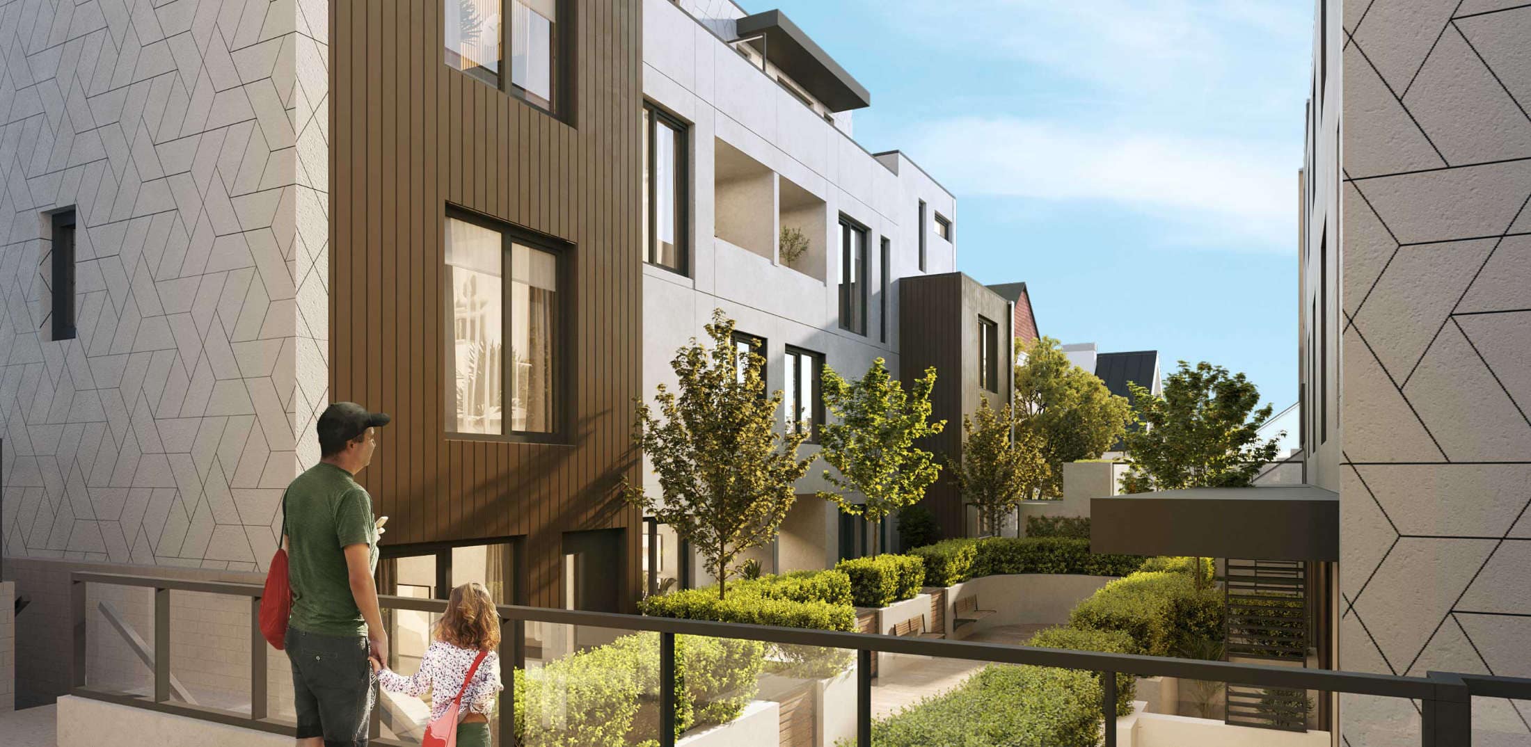 The site design centres around a landscaped courtyard that encourages community interaction while providing a safe, green space for everyday enjoyment. Generous patios, balconies, and rooftop decks extend living outdoors, ideal for entertaining or relaxing.