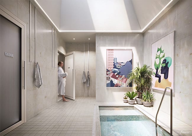 - Wellness spa with cold plunge, sauna, and steam room