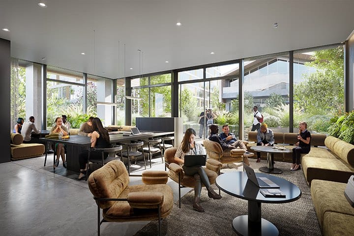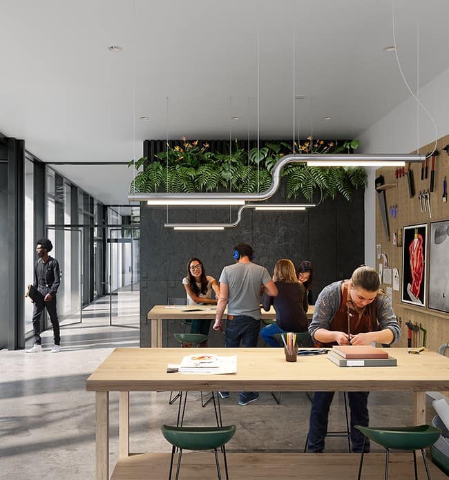 - Co-working lounge with private booths and collaborative tables