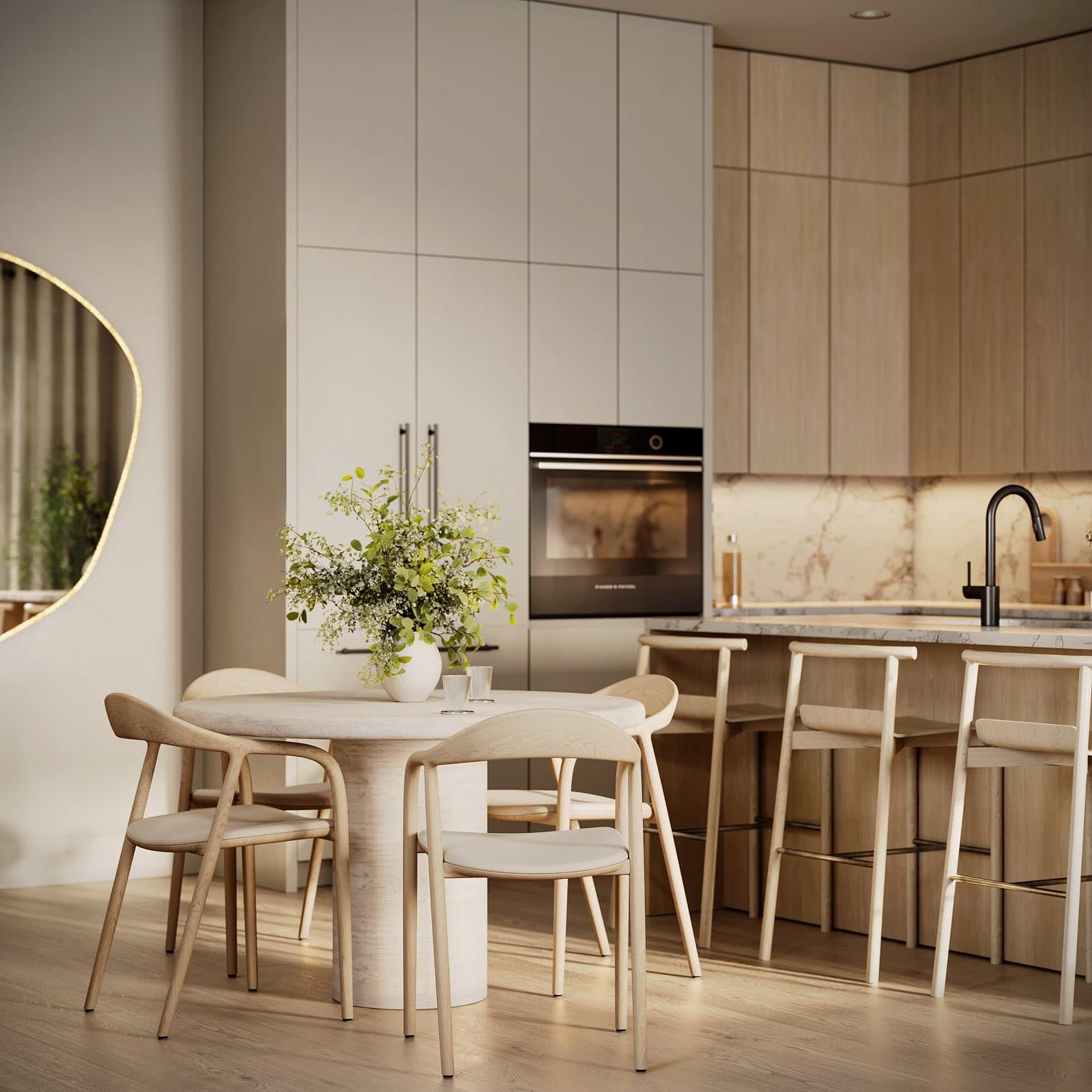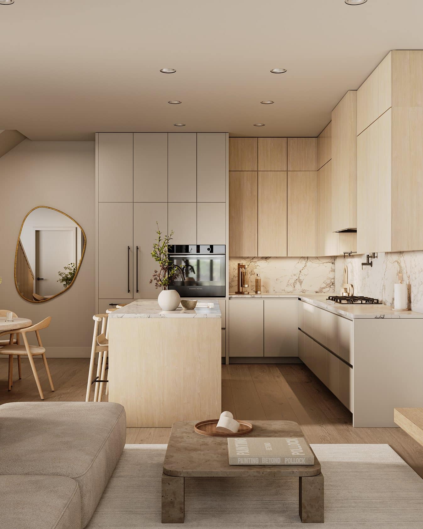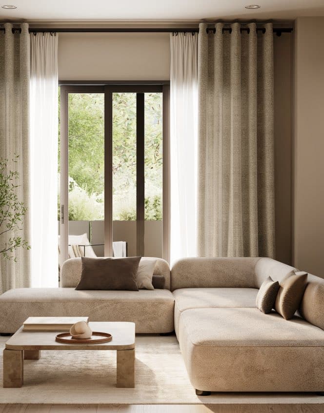 - Warm, neutral interior palette inspired by natural elements