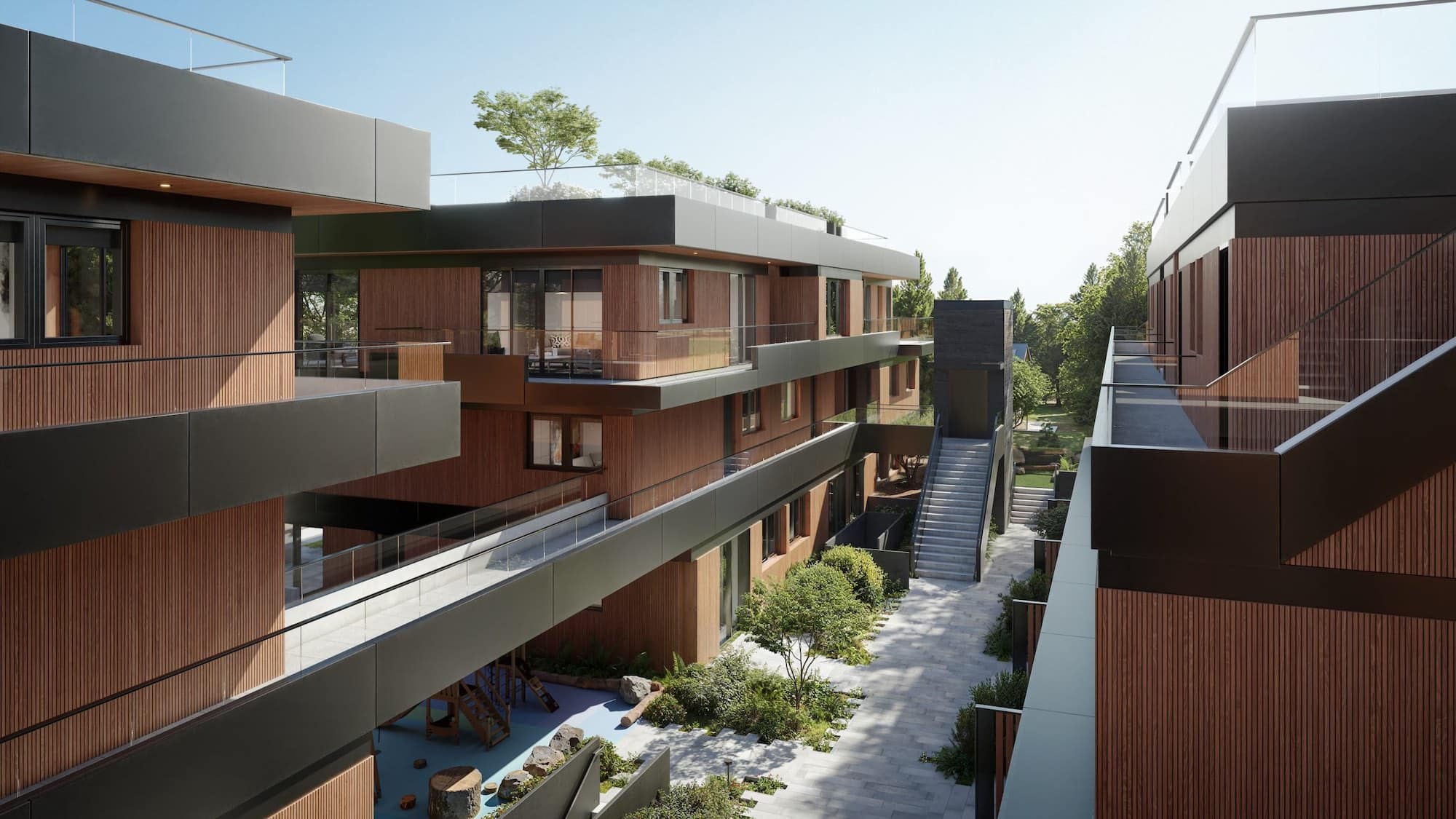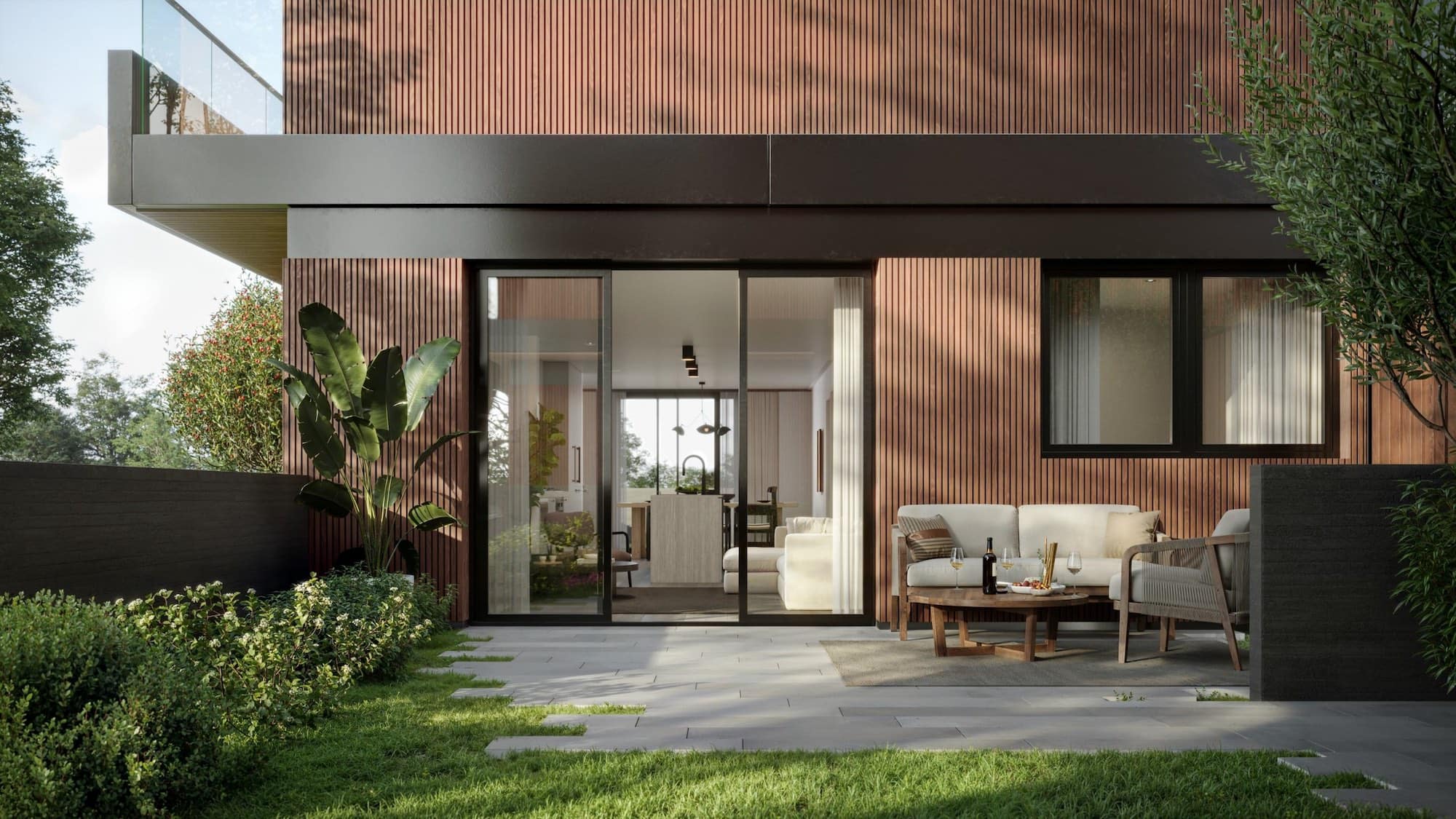 Designed by SHAPE Architecture and finished by Bรคrbel Interiors, Wren Vancouver homes feature warm wood palettes, expansive windows, and seamless transitions between indoor rooms and outdoor retreats. Private garden patios, expansive balconies, and select rooftop decks extend daily living into the open air, with many homes offering views to the mountains, English Bay, and the city skyline.
